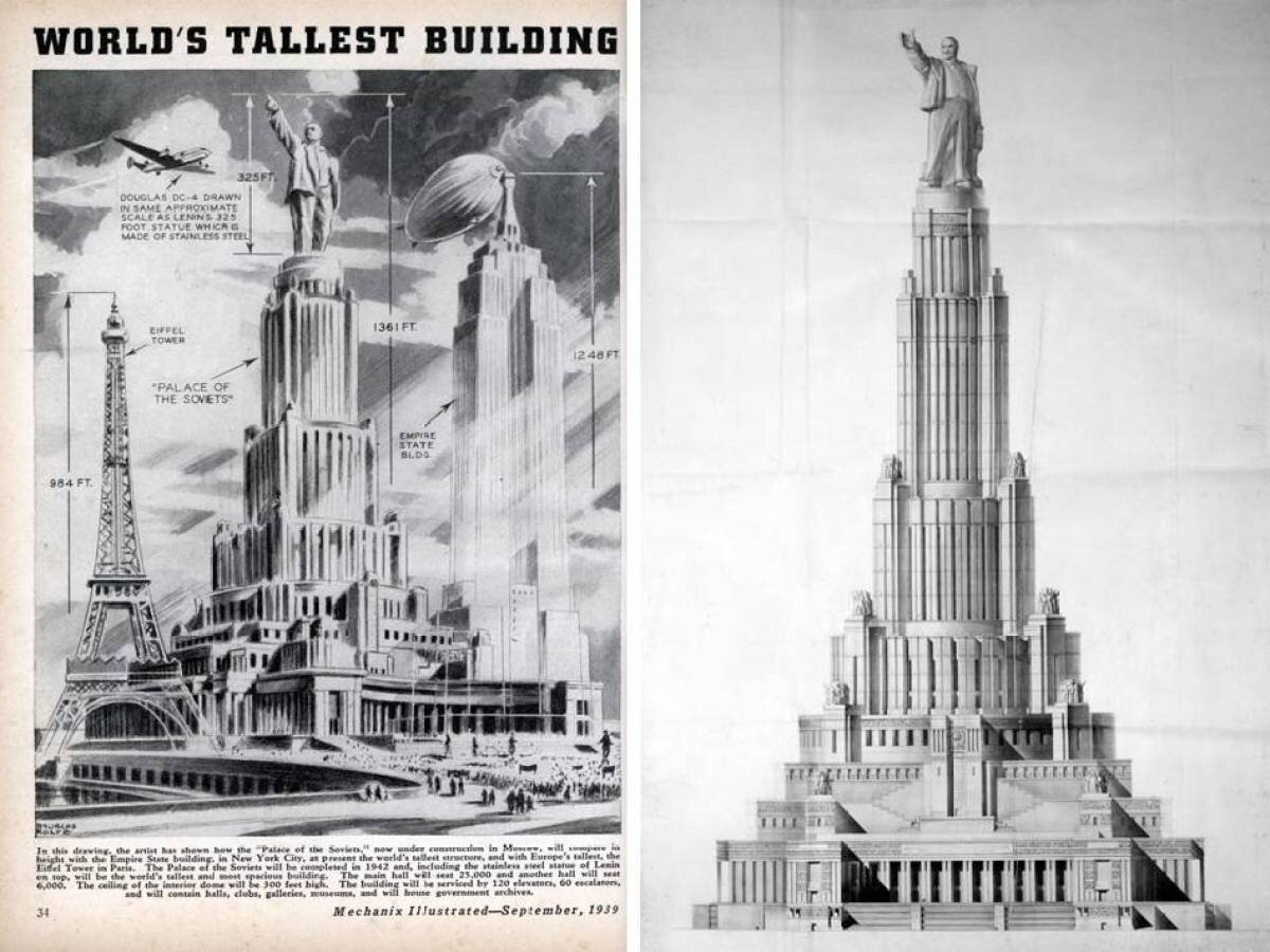 Дворец Советов: мечта о высотеОдним из самых грандиозных проектов стал Дворец Советов, который задумывался как величайшее здание на земле. Его высота должна была составить 415 метров, что превышало высоты Эйфелевой башни и Эмпайр-стейт-билдинг. Вершину здания планировалось увенчать 100-метровой скульптурой Ленина. Проект был настолько амбициозен, что в его рамках предполагалось создание специальных лабораторий по оптике и акустике. Однако в 1941 году, с началом войны, строительство было приостановлено навсегда.