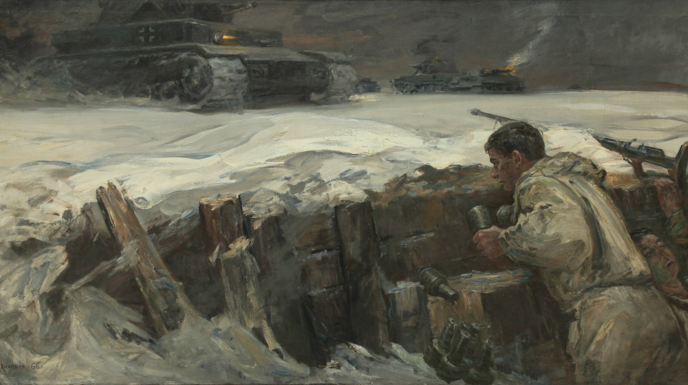 Утро. Мороз -30°C. Земля промёрзла так, что окопы копать невозможно. Немцы идут волнами: сначала 20 танков, потом ещё 30. Артиллерии почти нет — только гранаты, бутылки с зажигательной смесью и «противотанковые» винтовки, которые пробивали броню лишь с 300 метров.