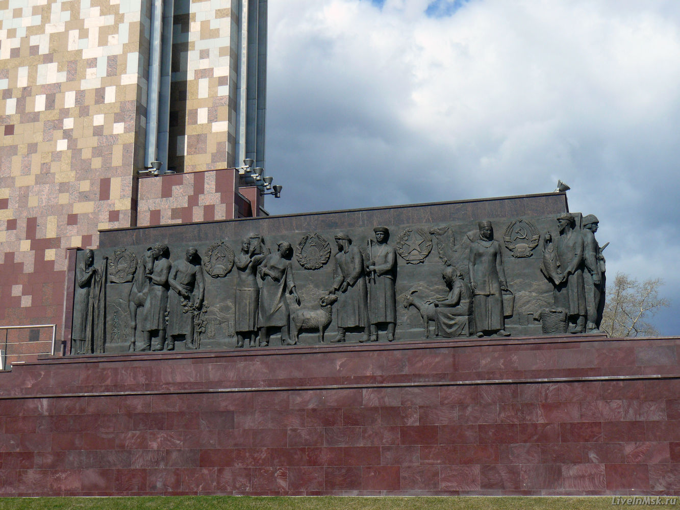 Фигуры высотой в 24,5 метра, представляющие юношу и девушку, с гордостью подняли над головой серп и молот, символизируя социалистические идеалы. Вместо традиционных материалов, таких как камень и бронза, для создания этих скульптур была выбрана нержавеющая сталь, что придавало им удивительную легкость и эффект динамики. Благодаря этому, изваяния словно парили в воздухе, отражая солнечные лучи и создавая волшебный эффект в разное время суток.
